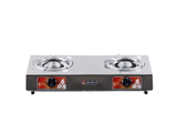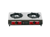 DOUBLE BURNER, SINGLE JET SYSTEM, STAINLESS TOP, AUTOMATIC IGNITION SWITCH, SEPARATE ENAMEL TRIVET AND DRIP PAN